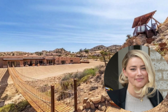 Ce chalet de près de 280 mètres carrés, sur deux étages, est composé de trois chambres, deux salles de bain, une cuisine avec des armoires en séquoia, un atelier de peinture, un petit studio d’enregistrement (anciennement un garage indépendant), une salle de cinéma ou encore une belle terrasse en bois, surplombant un magnifique canyon.